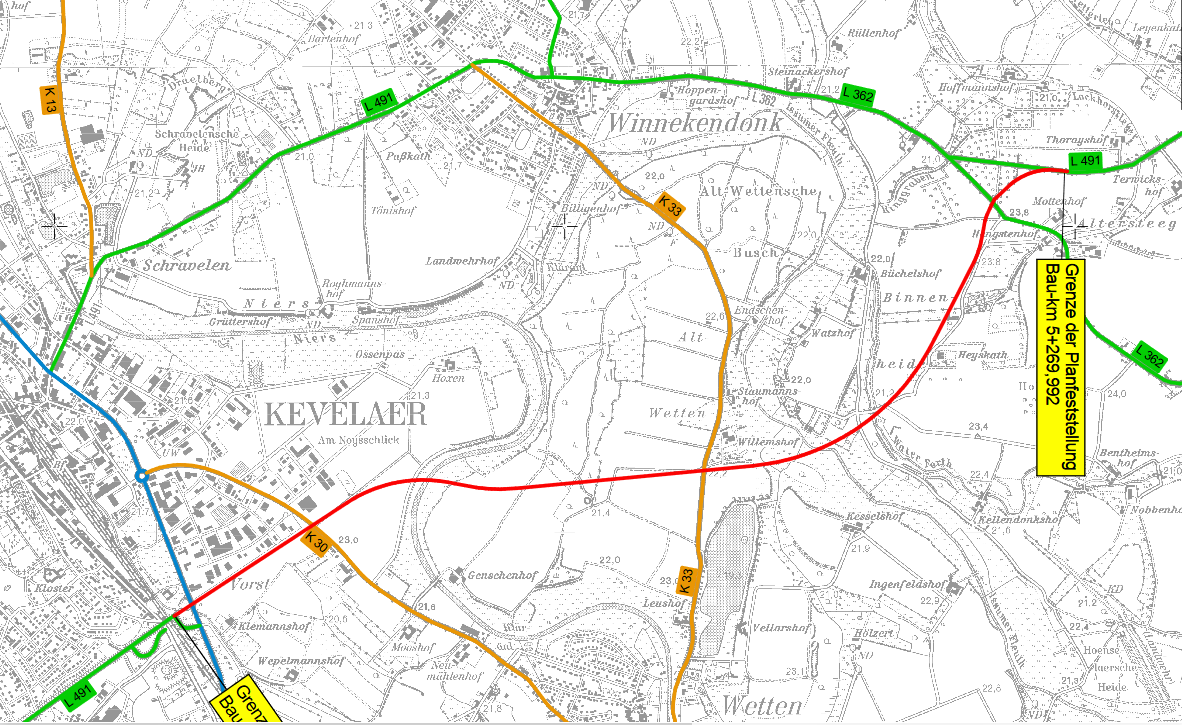 Ab Dienstag, 22.01.2019 lagen die dem Planfeststellungsbeschluss zur OW1 zugrunde liegenden Pläne für 2 Wochen im Rathaus der Stadt Kevelaer aus. Die ersten Planungen stammen aus den 60ger Jahren.